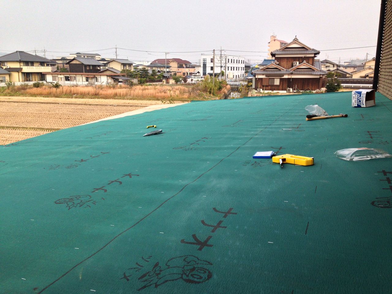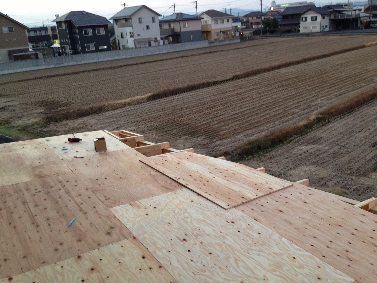 強度の観点から野地板を市松模様に貼っていきましたが、これがツーバイ工法として正しいのかはわかりません。