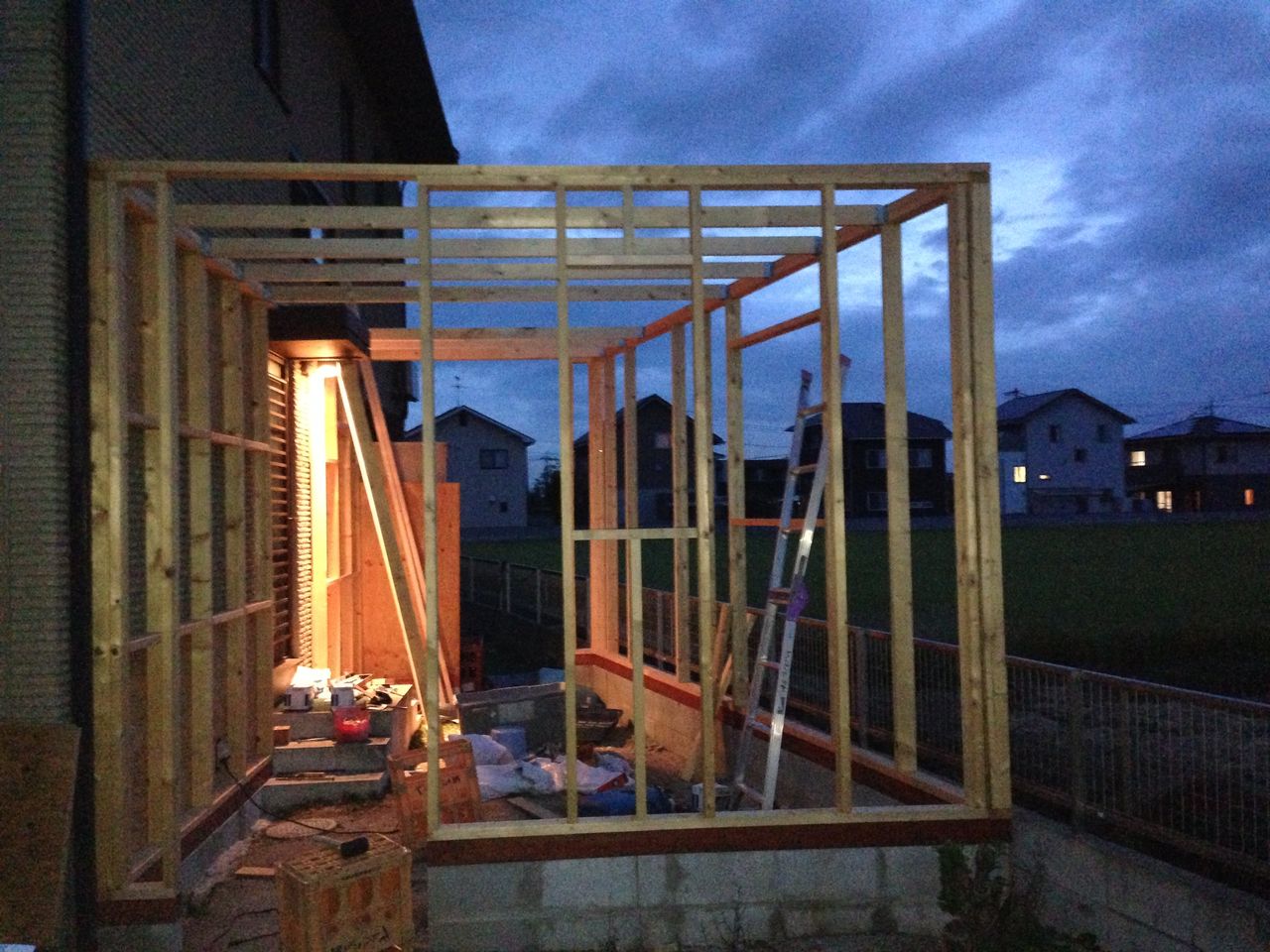 という訳で、他の3面の壁は枠を立ててから貼っていく作戦に変更