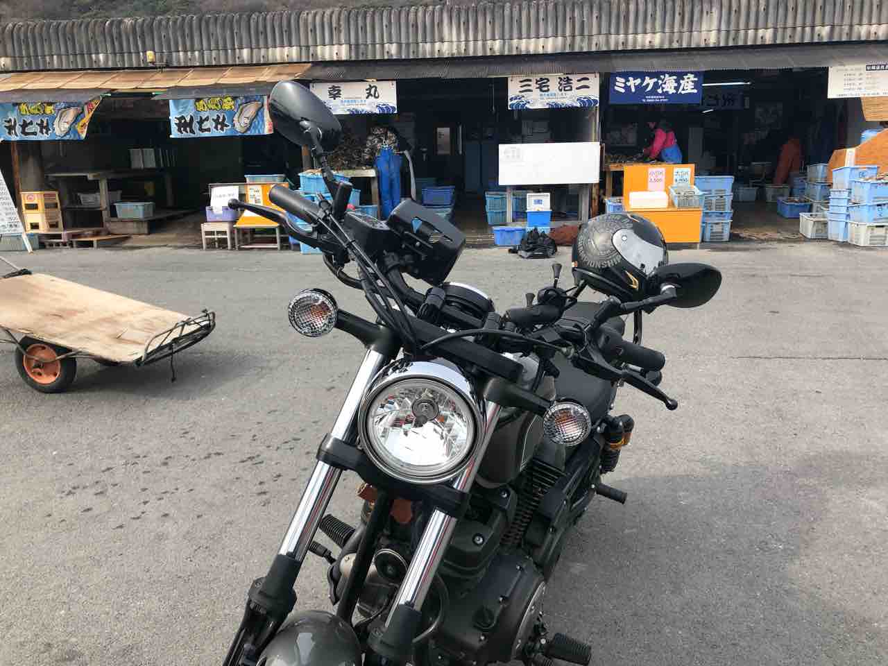 バイクこっちの方停めたらいいよと言われたので、お店の前に移動させてもらいました。
